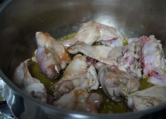 Предлагаем вам идеальный рецепт. Чтобы начать с приготовления кролика, сначала нарежьте его мясо на кусочки и приправьте солью и перцем. Затем поставьте кастрюлю на сильный огонь с небольшим количеством оливкового масла и обжарьте кролика.