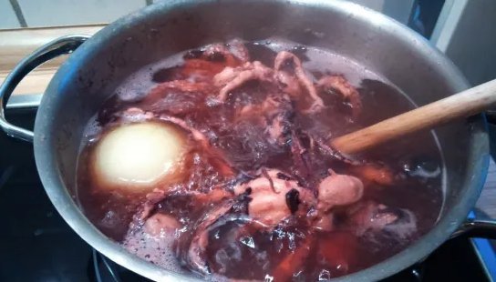 Когда вода закипит, добавьте осьминога, дайте постоять 10-15 секунд и выньте. Повторите этот шаг, добавляя осьминога в воду и вынимая его еще 2 раза, что является одной из уловок, чтобы он не стал жестким.