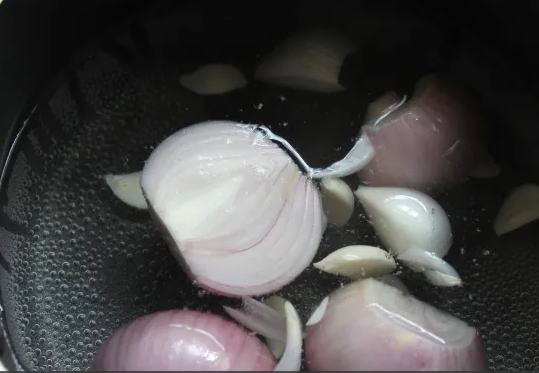 Чтобы приготовить осьминога по этому рецепту, бросьте в скороварку измельченный чеснок, нарезанный лук и соль по вкусу. Добавьте достаточно воды, чтобы покрыть осьминога, добавьте бокал вина и поставьте на средний огонь.