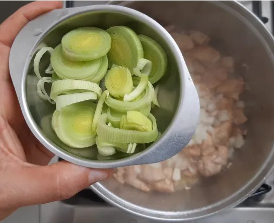 Совет: если вы не хотите использовать лук-порей (стебель), замените его двумя зубчиками обычного чеснока.