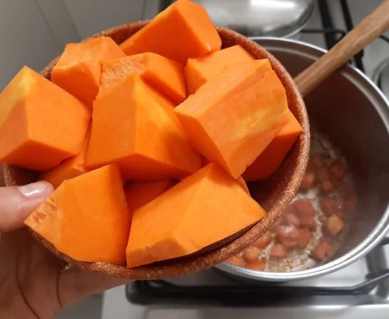 Помимо того, что тыква делает бульон вкусным, тыква помогает нам укрепить иммунную систему и мышцы, а также дает нам другие полезные вещества. Тыквенный суп можно приготовить с курицей и беконом, он сочетается со многими специями.