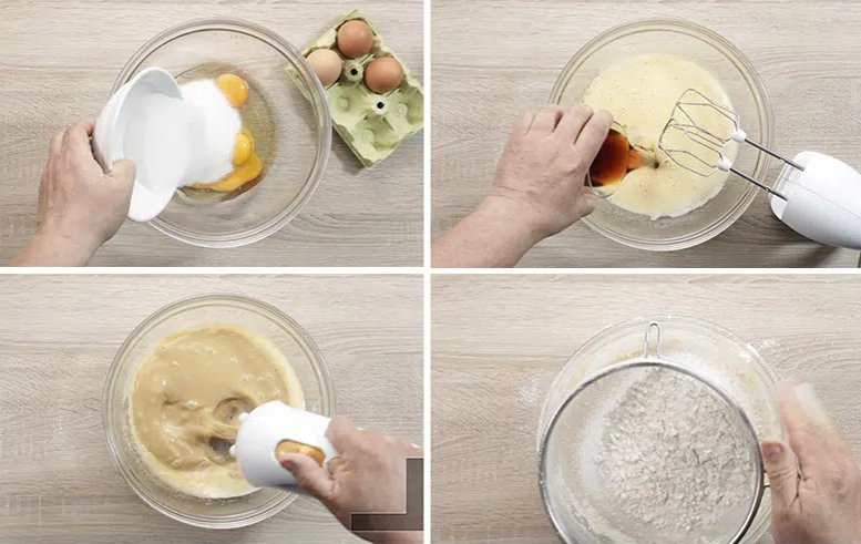 Когда масло полностью остынет (эта деталь важна), смешиваем яйца со стаканом аниса или вина, просеянной мукой и дрожжами.
