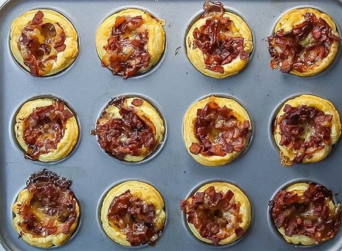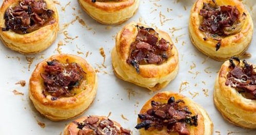 Эти тарталетки с беконом и луком очень легко приготовить. Они сделаны из слоеного теста и очень вкусны в качестве закуски или основного блюда.